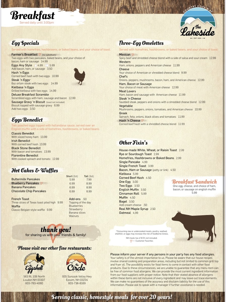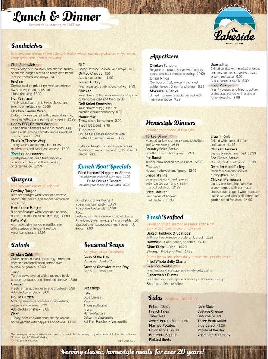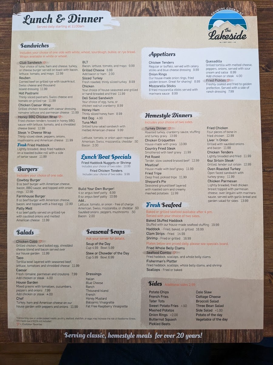 Welcome to Country Cook'n At The Lakeside, where the charm of lakeside dining meets homestyle cooking. Nestled in Gilford, New Hampshire, this cozy eatery offers a menu bursting with delicious options that cater to every craving. The focus here is on comfort food crafted from fresh, quality ingredients.