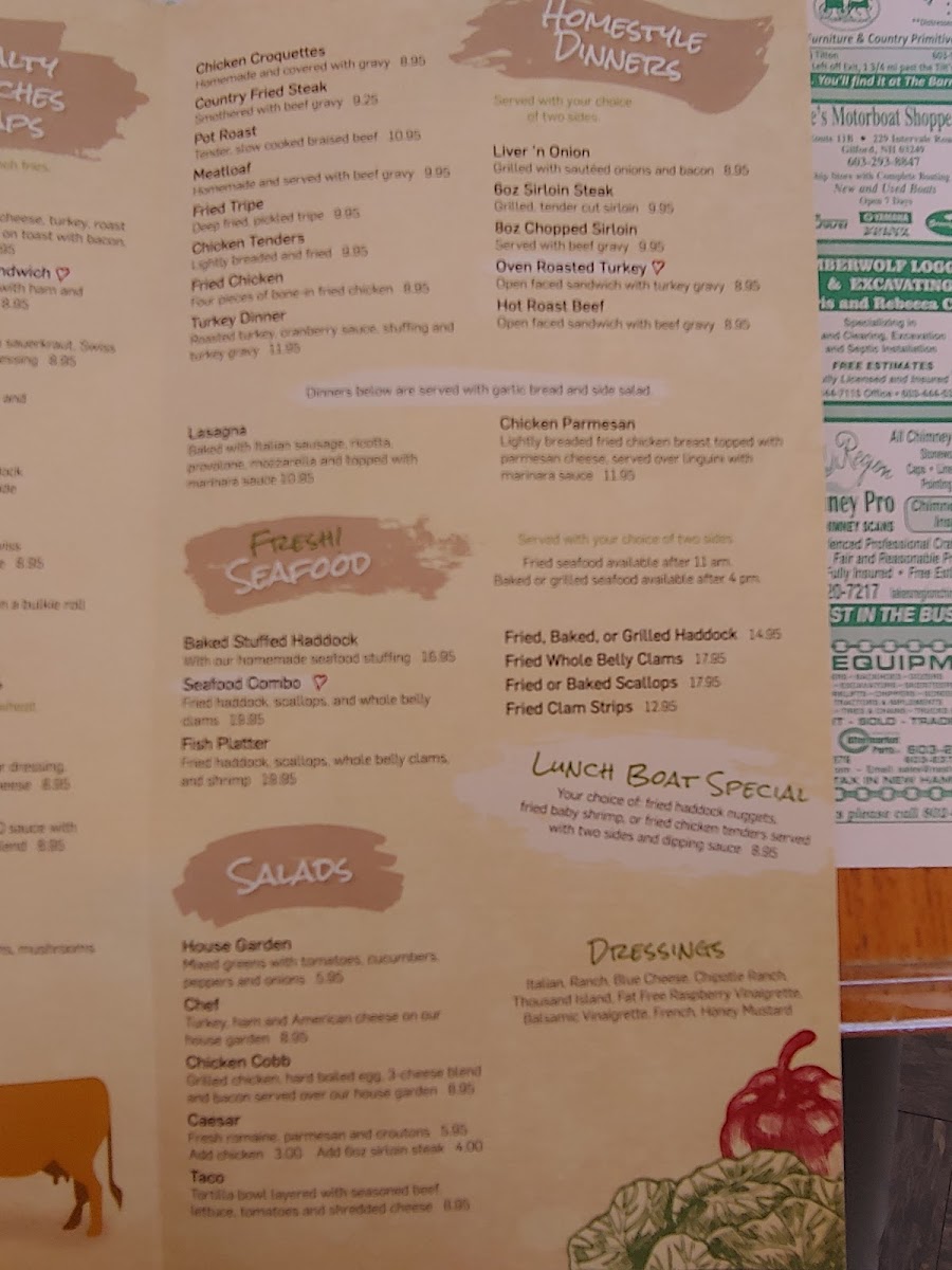 - Seafood: Indulge in a seafood combo featuring fried haddock, scallops, and whole belly clams, or savor the baked haddock for something lighter.